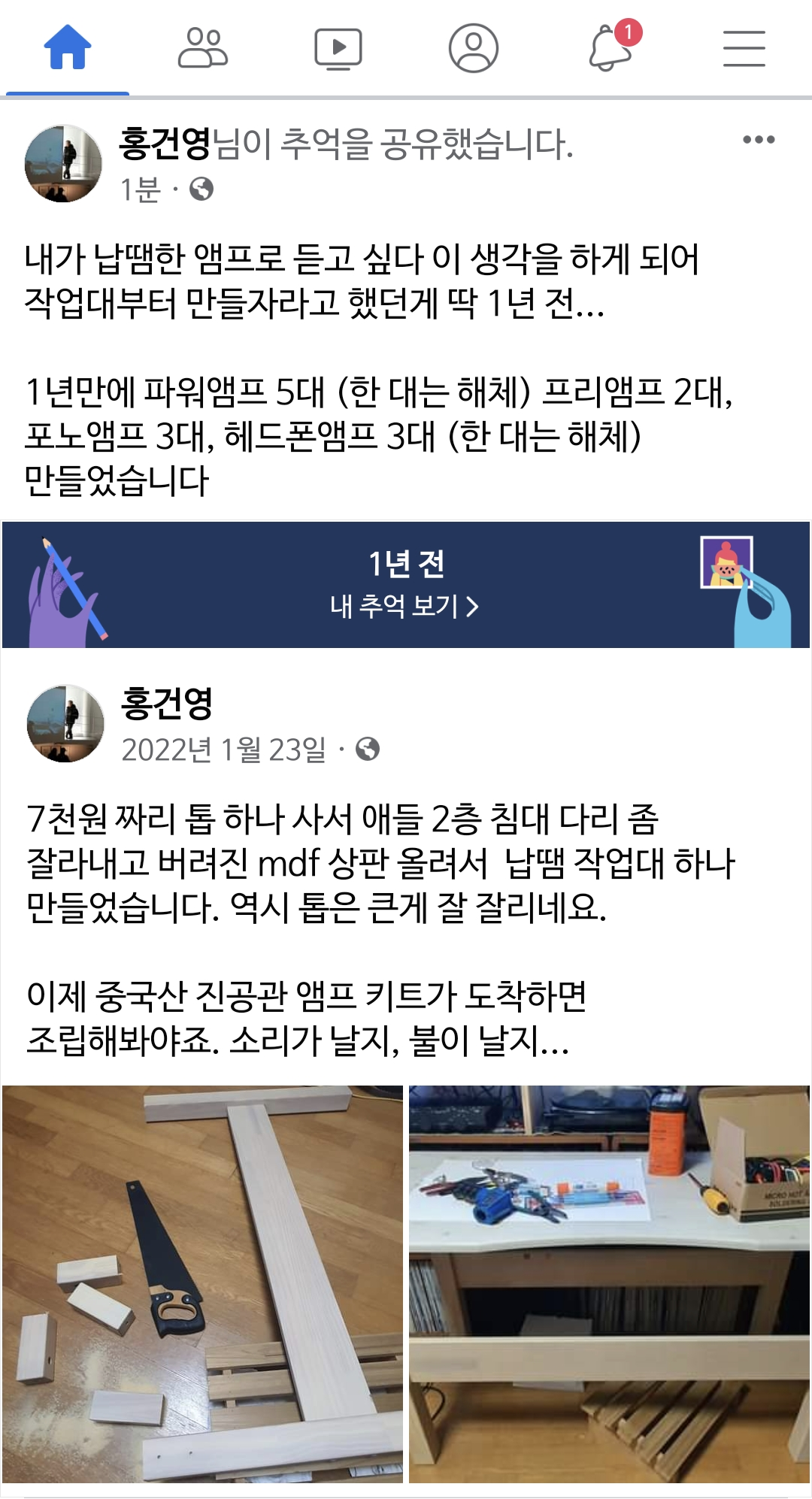 오늘이 말하자면 앰프 자작 1주년이란걸 페이스북이 알려줬습니다 저 작업대가 지금은 이렇습니다
