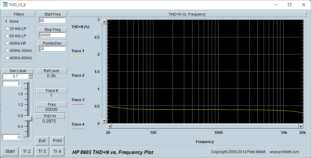 이 상태에서 측정된 THD입니다. 0.4% 이하로 나오는 듯 하네요