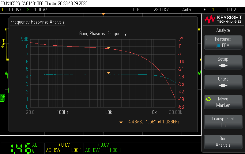 약 4.43dB의 gain입니다. 주파수 응답 특성은 좋아 보입니다.