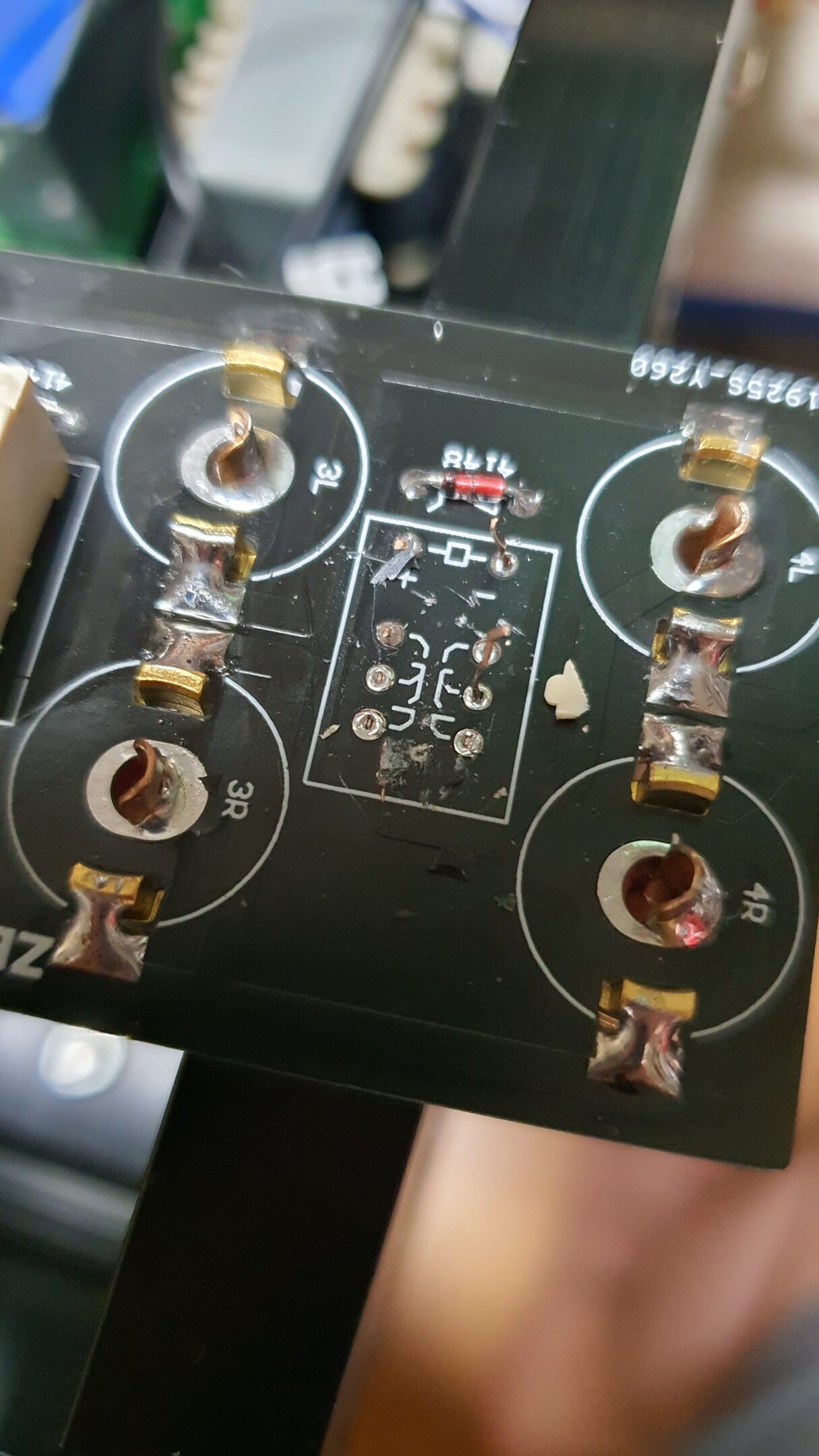 예상했던 대로 PCB는 멀쩡하고 릴레이만 떨어져 나갔습니다. 남은 잔해를 정리하고 납을 빨아들입니다. 그리고 새 부품을 달아줍니다.
