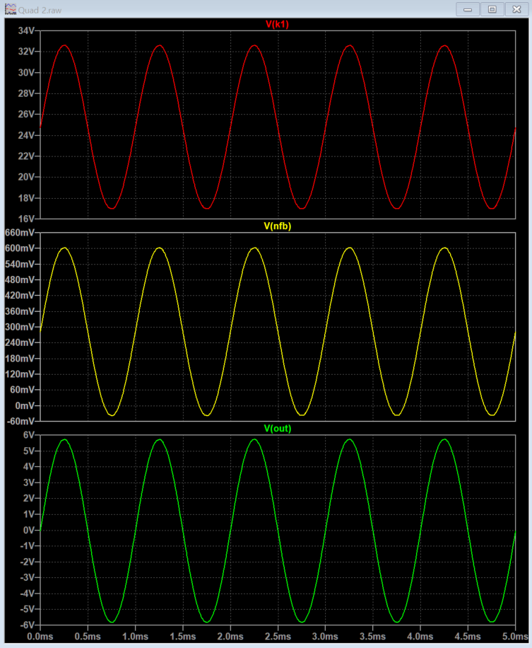 V(K1)이 KNF 권선의 출력이고 V(nfb)는 일반 NFB 라인입니다. 원래 회로도에는 470옴으로 되어 있는데 너무 피드백을 많이 거는 것 같습니다.