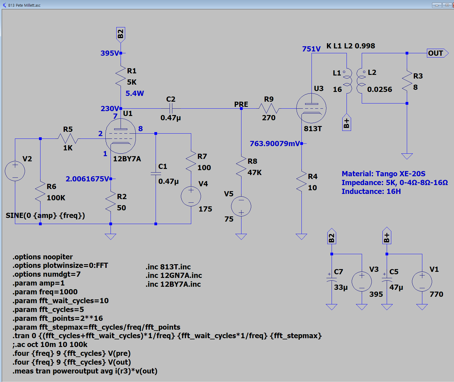 얼마 전 뜻하지 않게 813을 여러 개 앰만사에서 구입하게 되어서 테스트를 한 번 해봤습니다. 적용한 회로는 Pete Millett씨의 회로도입니다.
